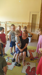 Kui lapsed olid lõpetanud oma nädalavahetuse tegemistest jutustamise, palusin Kaisal sünnipäevalapse jaoks tool tuua. Osa lapsi oli üllatunud, et kellel sünnipäev? Kert-poiss, kes tuli hommikul lillekimbuga teadis, et sünnipäev on õpetaja Kail. Alex oli vägagi üllatunud näoga ja küsis, et kas tõstame õhku ka? :). Vastuseks kõlas ei ja jaa läbisegi, nalja kui palju!! Laulsime siis Kaile sünnipäevalaulu ja tegime puntrakalli, Kert ulatas lõhnava piibelehekimbu! Kai tegi nalja, et kas siis üles ei tõstetagi?:))) Enne kui jõudsime reageerida olid väikesed käed tooli küljes , haarasin siis ka toolist, et keegi haiget ei saaks ja tool kerkiski korraks maast lahti. Igatahes oli kõigil väga lõbus!